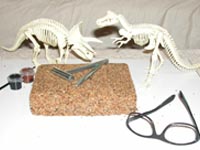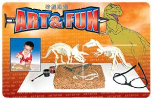 恐龍的奧秘讓許多小朋友著迷不已,如果能夠當個考古家,挖掘恐龍,那才叫酷,本套小小考古家,獨步市場的情境設計,讓小朋友戴上防塵眼鏡,手拿鎚子與鑿子,慢慢在石磚上敲敲敲,還附有小刷子,可以邊敲邊刷,儼然是個小小考古學家。