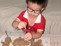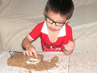 1、將"恐龍化石"放置在報紙或塑膠墊上就是一個步驟走及方式挖掘。