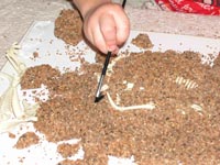 3、把骨頭蓬鬆的土刷掉,請交替使用刷子及鑿子挖掘直到骨頭露出來,小心不要損壞骨頭。