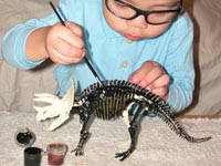 5、將恐龍模型的每一部份用溫水清洗,這將移除所有灰塵,也有助於顏料附著完成的恐龍上,在一組裝說明組合恐龍骨骸。