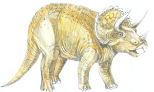 文字介紹:學名意思為「臉上有三根角」,是已知最大形的角龍類,也是最晚出現、數量最多的種類之一。