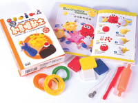 包裝內容物:創意蠟黏土書籍‧彩色蠟黏土‧塑膠滾筒‧蠟線‧雕塑刀‧鐵片底座‧毛根