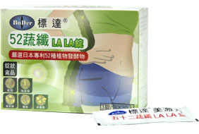 成分: 綜合蔬果發酵物(含52種蔬果;日本專利)、綜合乳酸菌 (含 L.acidophilus、B.longum、S. faecalis.) 、甜菜根粉、綜合蔬果粉(蘋果、梨子、奇異果、胡瓜、芹菜、菠菜、白菜、鳳梨、檸檬、百香果)、山茶花種籽萃取物(日本專利)